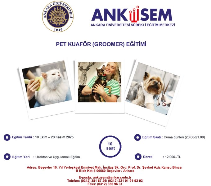 PET KUAFÖR (GROOMER) EĞİTİMİ Bu etkinlik sona ermiştir. PET KUAFÖR (GROOMER) EĞİTİMİ (10 Ekim – 28 Kasım 2025) Başlangıç Zamanı 00:00 10 Ekim 2025 Bitiş Zamanı 00:00 28 Kasım 2025 Paylaş: Previous Event Bilgi Sistemleri Subayı Temel Sertifika Programı Eğitimi Next Event Eğitim İşbirliği Protokolü
